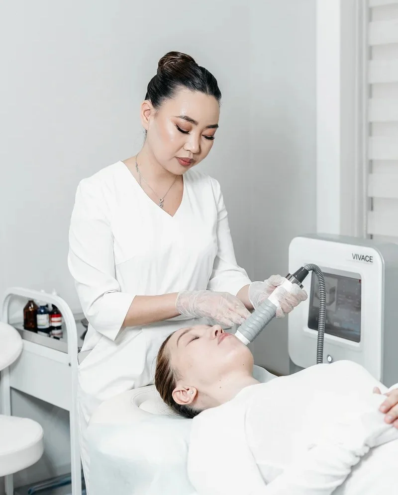 В клинике DOSTYKMED мы используем оригинальный аппарат Vivace (США) и индивидуально подбираем глубину, мощность и тип насадки под ваш тип кожи и задачи.